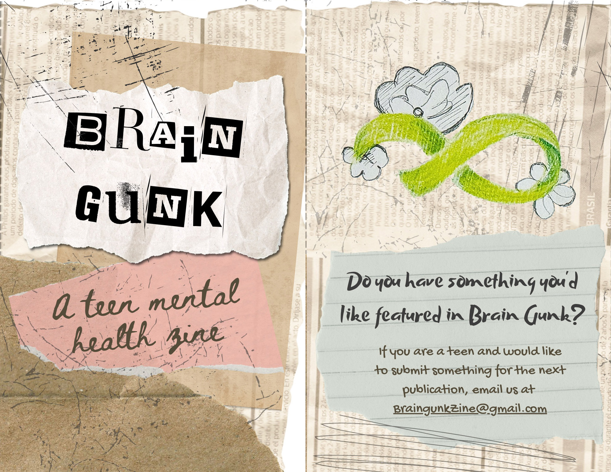 Brain Gunk, a teen mental health zine, is created by teens, for teens! It’s a safe space to share thoughts, art, and stories about mental health — the real stuff we all go through but don’t always talk about. The goal is to break the stigma, start conversations, and remind each other that it’s okay to not be okay. This zine is all about honesty, creativity, and community. Join in and help shine a light on mental health for this generation.